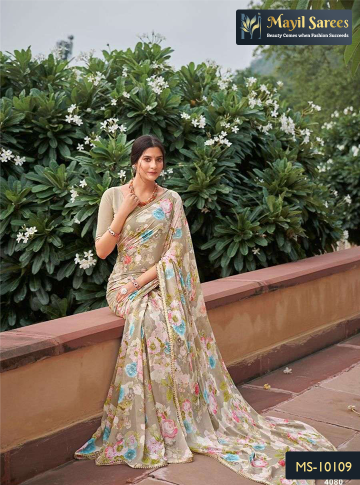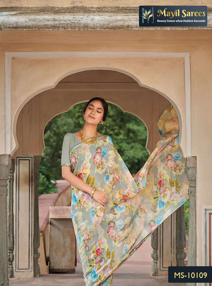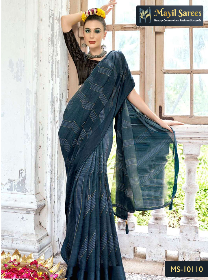 The satin chiffon sarees in this collection are perfect for those who appreciate the finer details of everyday fashion. Explore now and add a touch of sophistication to your casual wardrobe. Shop our Casual Wear Sarees to effortlessly elevate your style with peacock blue, army green, dark grey, and more, exclusively at Mayil Sarees UK.