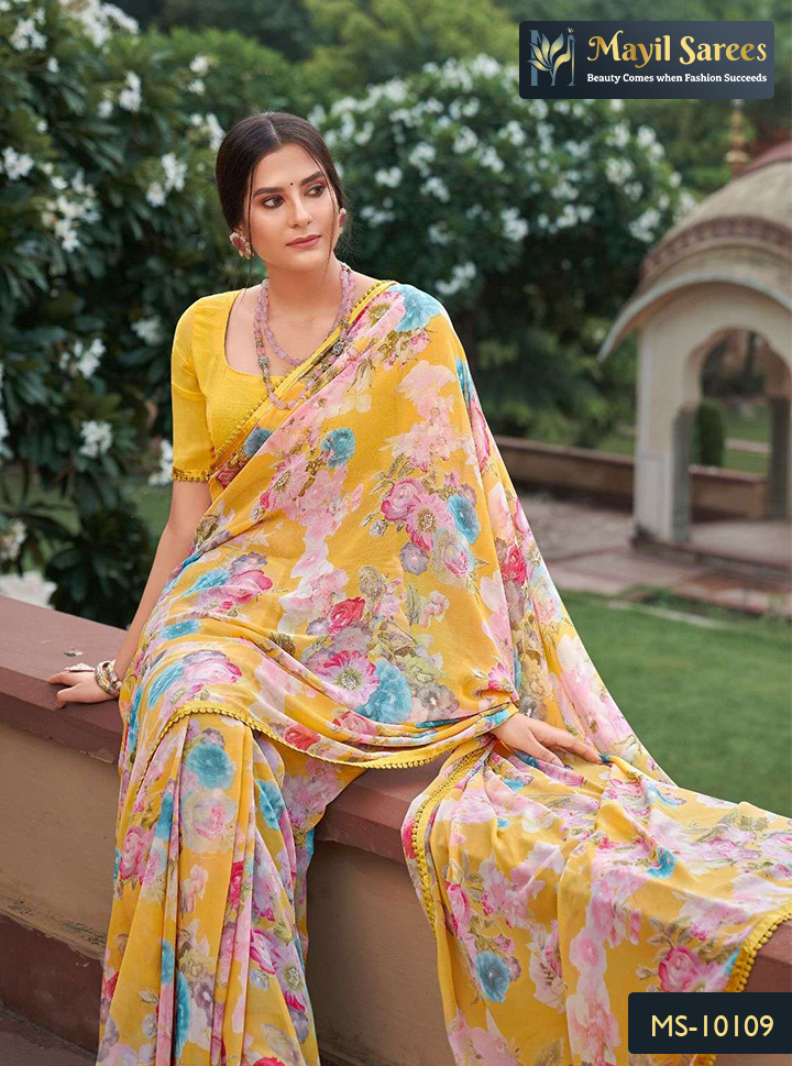 Introducing Mayil Sarees UK's Casual Wear Sarees Collection, where comfort meets timeless elegance. Our carefully curated selection of Indian wedding cloths in satin chiffon offers a perfect blend of style for your everyday wardrobe.