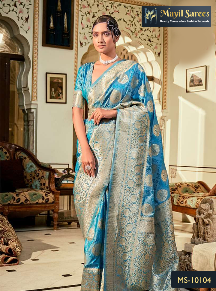 Pastel Blue Banarasi Butta Silk Saree