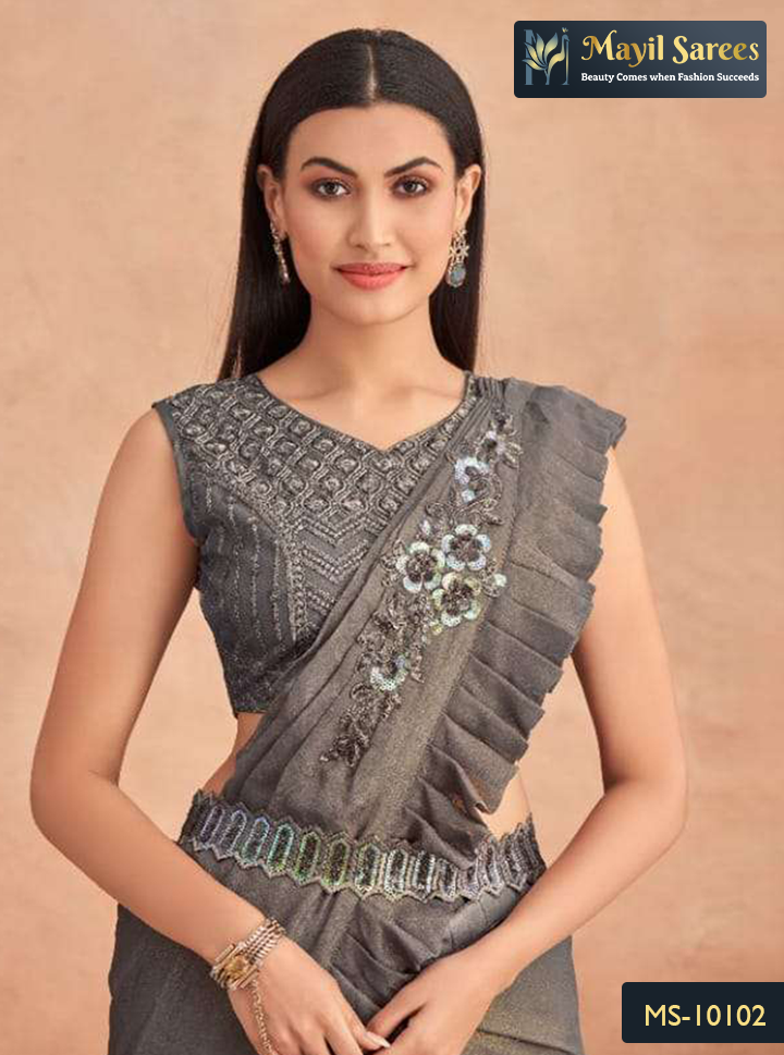 Grey & Gold Double Shade Ready to Wear Fancy Designer Saree with Belt