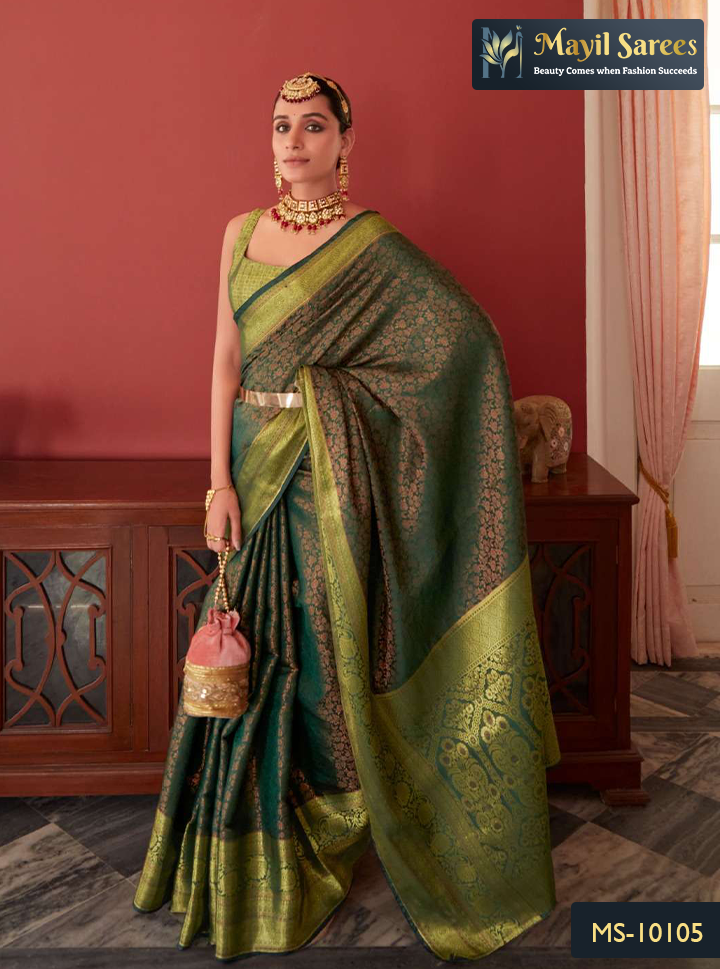 Indulge in the timeless beauty of Kanchivaram Silk Sarees. This saree is a masterpiece of craftsmanship, known for its rich and luxurious silk fabric, intricate prints, and traditional border. Whether you're attending a wedding, a special event, or simply want to make a statement with your style, Kanchivaram Silk Sarees are a perfect choice.